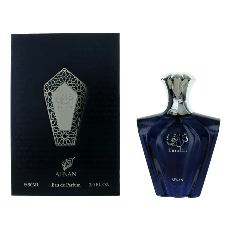 Turathi Blue by Afnan is a Aromatic Aquatic fragrance for men. Turathi Blue was launched in 2021. Top note is Citruses; middle notes are Amber and Woodsy Notes; base notes are Musk, Patchouli and Spices.